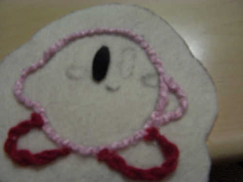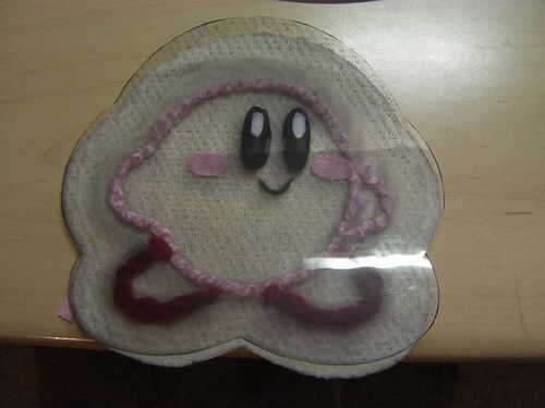 El blush rosa es incluso más fácil. Como usted con los ojos, cortarlos hacia fuera hacia fuera de la plantilla, traza a su alrededor, pegar temporalmente la sección de papel para el fieltro y luego recortar.