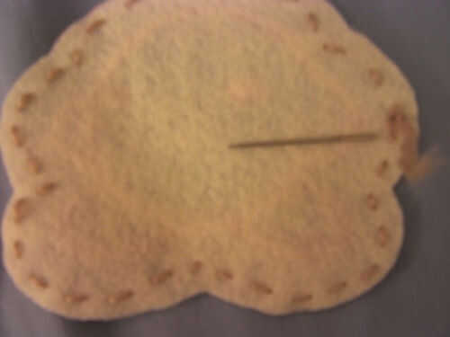Tomar el hilo marrón luz pase a través de la agujay comenzar cosiendo por el fieltro.  Mantener correspondencia al contorno y luego ate cuando usted haya terminado.