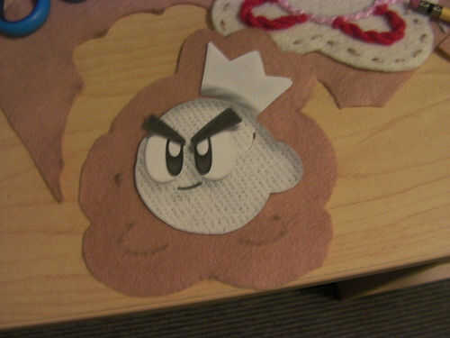 Lo mismo con Kirby, se va creando un contorno en el fieltro primero, cortar hacia fuera y luego pegar el hilo hacia abajo.