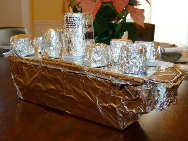 3. Luego cubrir todo en papel de aluminio. Algunas zonas tuvimos cuidadosos para poner la hoja planas y otras áreas que agrupados por efecto y hacer que todo se mantenga mejor juntos.