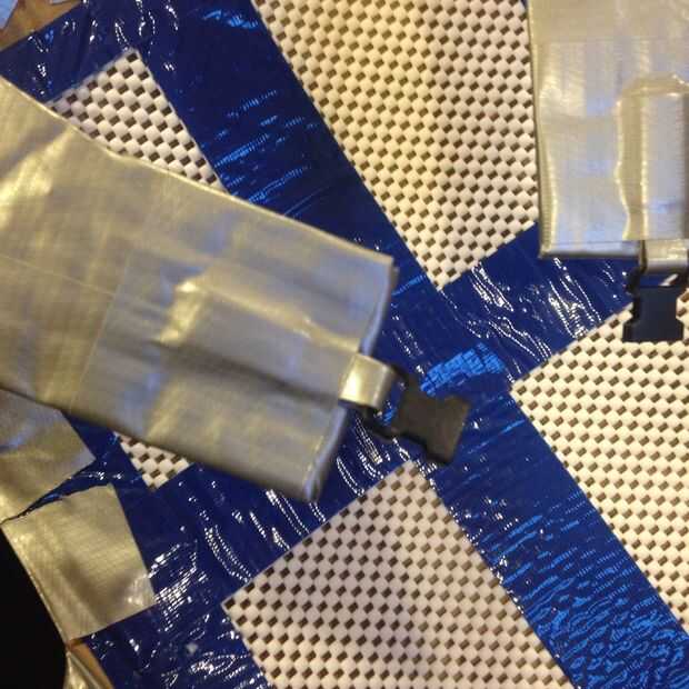 Luego, grabó algunas del forro de estante Plast-o-Mat en el frente de mi placa de pecho con cinta adhesiva y cubiertos todo en cinta. Repetí este proceso en la placa trasera también.