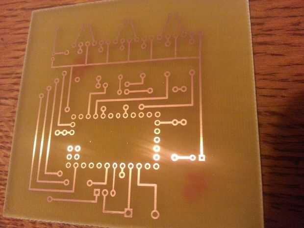 Usé desarrollo positivo del sistema grabar mi consejo. En esto hay muchos Instructables. Aquí es un ejemplo. Usted puede utilizar el método de transferencia de tóner o cualquier otro funcione para usted.
