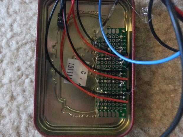 Utilice la matriz de LED para marcar dónde perforar los agujeros en la tapa de la tetera de la vivienda. Consejo: perforar la lata mientras está sentado en una tabla de madera. Esto le ayudará para perforar un agujero más limpio.