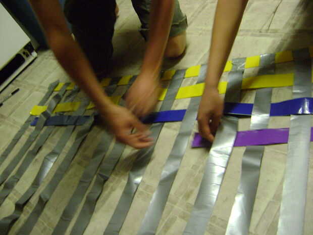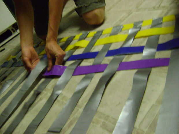 esta es mi última creación, un 15 "x 15" x 4 "bolsa de bolsa/bolso tejido del conducto cinta. ¡ Es super robusto y bastante impresionante!Paso 1: Elementos necesariosAprox. 120 yardas de cinta para ductos (utiliza 3 colores diferentes con 2
