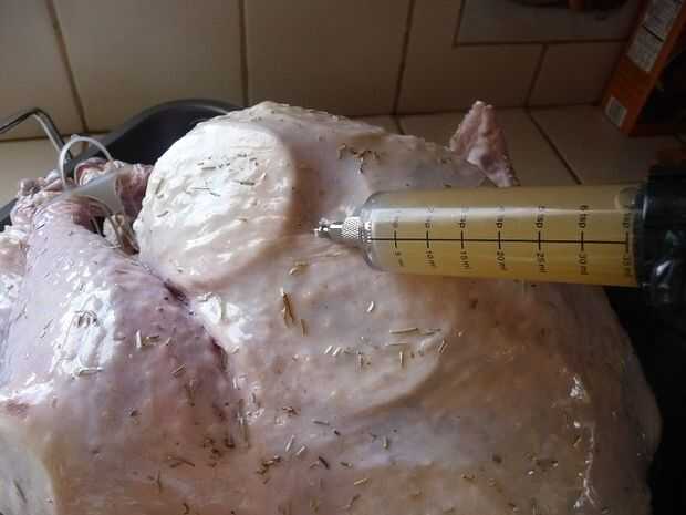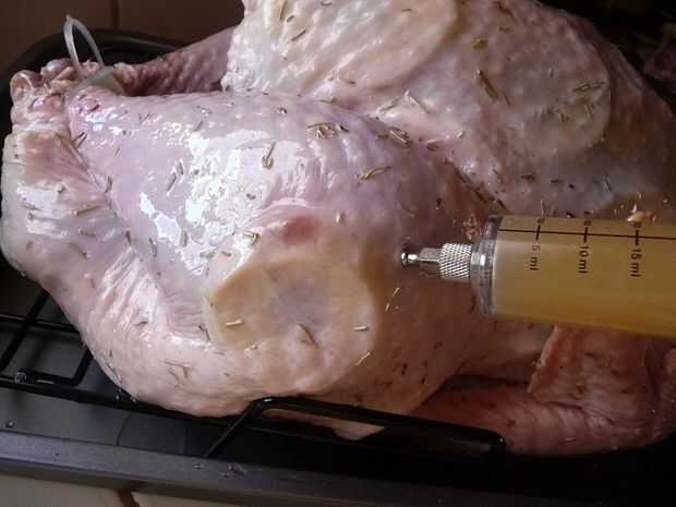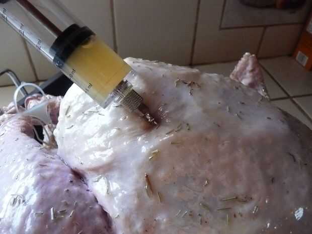 - Llenar la jeringa y continuar el proceso anterior con los muslos, muslos y alas.