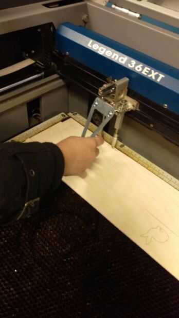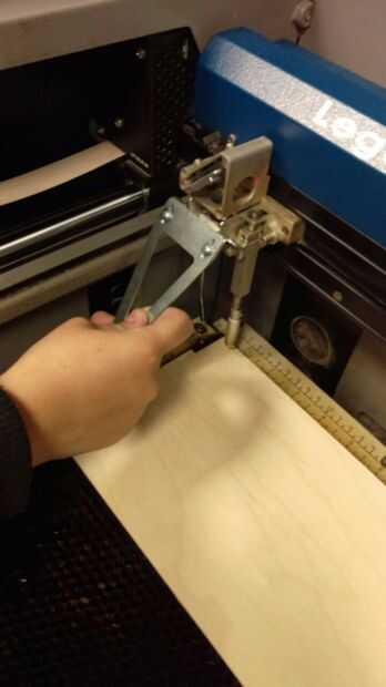 Para enfocar manualmente el láser elegir el triángulo de metal que encaja con la lente que está utilizando. Coloque el triángulo para que quede sobre la parte superior de la lente. Si es necesario se puede "apagar X / Y" centrarse en el medio de su material. Ahora uso la tecla de flecha dentro de la cama y mover el eje z hasta la punta del triángulo apenas está tocando el material. Cuando le quite el triángulo y pulse Reset para activar el X / Y. Usted ahora se enfocan manualmente.