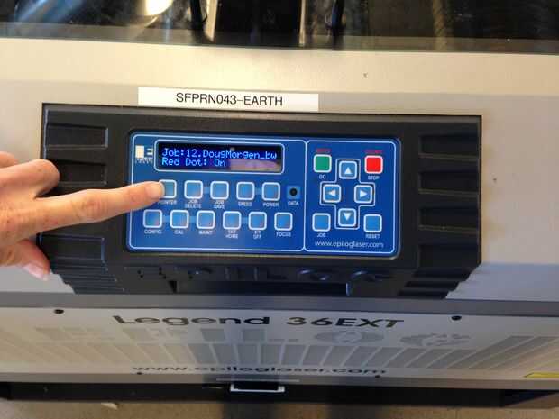 Luego ejecute su impresión, ver el puntero. En cualquier momento puede presionar stop, y el láser se detendrá tan pronto como llega al final de una línea. Me gusta llamarlo un "pensamiento".
