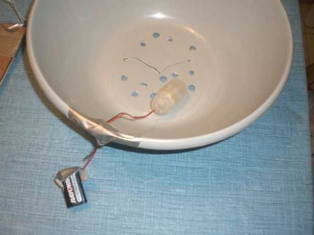 Ahora la vibración del motor en el tazón de fuente y el cable hasta el borde del tazón de fuente de la cinta.