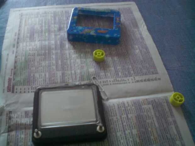 Usted descubrirá que el frontal de plástico, en nuestro caso el diseño azul de Toy Story, es realmente sólo una cubierta, el polvo de aluminio y bolas de plástico se sellan detrás del vidrio y de plástico.