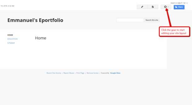• Ir al botón del engranaje en la esquina superior derecha del sitio