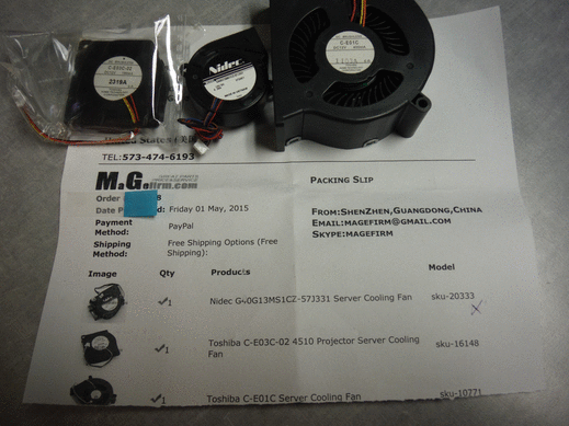 Magefirm.com lleva los 3 ventiladores necesarios, aunque sean en China son relativamente rápidos en el envío. Creo que 2 semanas no 2 días. Todos los fans de tres se pueden pedir para unos 87 dólares.
