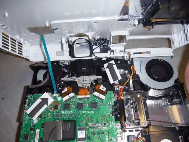 Hay 2 cables uniendo las mitades superior e inferior. La primera es el cable de cinta azul a la izquierda y el segundo es un cable negro hacia la parte delantera.