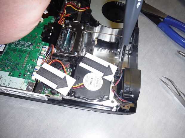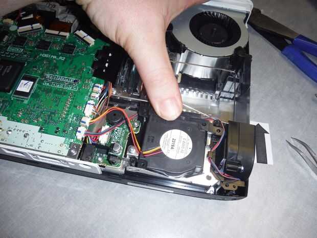 Desenganchar el ventilador lateral y conectar el ventilador de recambio. Pase los cables por el mismo camino como retiro y retrotraer el ventilador en su vivienda. Asegúrelo con los tornillos de acero inoxidable 2 retirados.