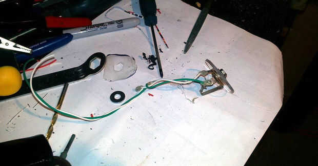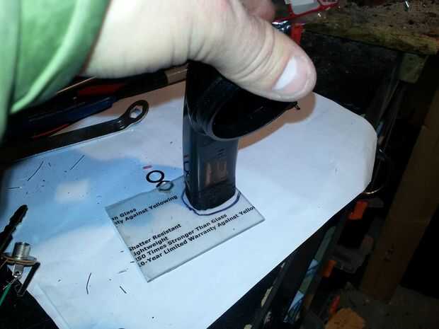 Usé algunos acrílico que tuve chutando alrededor para montar al jack 1/4". Me di cuenta antes que el jack 1/4" no encajan dentro de los auriculares del teléfono, así que corte el acrílico más grande entonces necesario a propósito. Cuando amplió el extremo del auricular con una pistola de calor el acrílico era el tamaño adecuado.