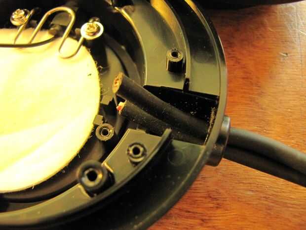 Alargar el agujero en la carcasa del auricular donde el gato era permitir que ambos cables caber a través de él.