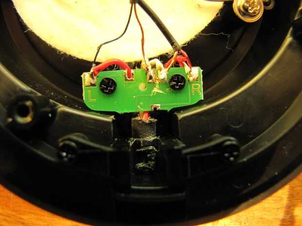 Soldadura con cuidado los nuevos cables a la placa de circuito para hacer las conexiones a las bobinas de voz de auriculares. Prestar atención a la polaridad, por supuesto. Los cables rojo (+) de la soldadura a los cojines exteriores y únalos a los cables de la bobina de voz verde y rojo. Los cables blanco (-) de la soldadura para las pastillas de centro recientemente aislados y conectan a los cables de la bobina de voz de oro. Usando un óhmetro, comprobar que la punta y el anillo en cada uno de los TRS gatos Lee unos 35 ohmios (la voz bobinas resistencias DC). Verifique también en ambos conectores TRS que no hay conexión de la punta o el anillo a las mangas de la tierra (la banda de tercera más grande en los jacks TRS). Y por último, verificar que no existe ninguna conexión en absoluto entre las dos tomas TRS nuevo (verificar continuidad de cada banda en cada TRS jack a todas las bandas de los otros TRS, no debe haber ninguna conexión entre los dos conectores TRS). Comprobar estos con cuidado!!! Cualquier cortocircuito que volar tu Pono! En serio.