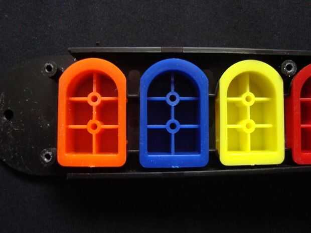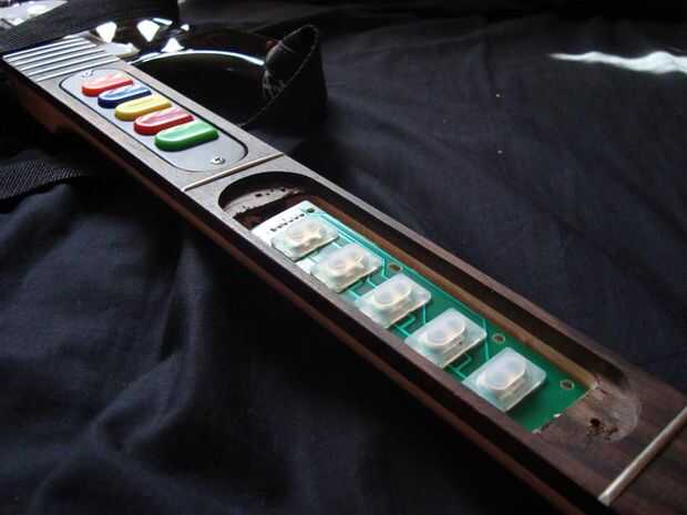 En este punto, sólo quería compartir por qué pensé que esto era una buena idea y pensé que este sería el mejor lugar para solicitar ideas alternativas. Estos botones del traste no al ras en la parte inferior (imagen 1) que están ahuecados un poco para permitir la jalea interruptores que controlan realmente la guitarra (Foto 2). Cuando sitúa el interruptor gelly (cuadro 3) parecía la solución más simple fue rellenar un poco los botones.