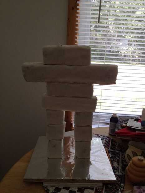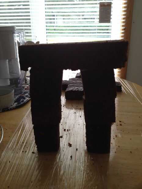 Yo utilice un tablero de la torta delgada porción de estómago poner en las piernas y superior con la torta de la barriga, que entonces yo asegurada con los pinchos.