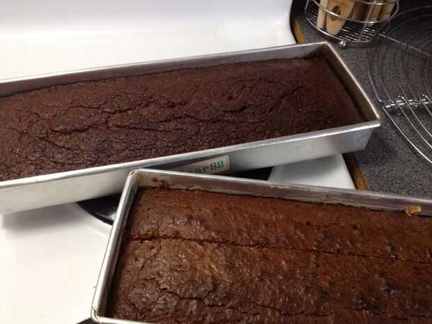 Yo uso 3 bandejas de brownies para esta tarta, cada bandeja fue diferente en sabores regular, mantequilla de maní y brownies de fudxge. Puede utilizar cualquier tortas de su preferencia obv. Lo estoy usando brownies fue conseguir la textura de la roca, tratando de hacer la torta para parecerse a una roca real, tanto como podía.