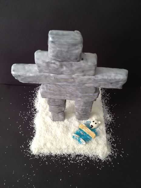 Luego cubra el tablero de la torta con coco desecado se asemejan a la nieve y decorar con un oso polar de fondant, nadando en un estanque. Lo básicamente canadiense ;)