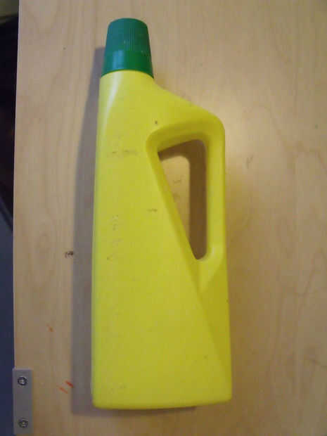 reutilizar viejas botellas de plástico vacías como objetos de arte. Busca botellas de detergente plástico con un asa. Preferiblemente no PET pero HDPE, con un pequeño 2 o 4 en la parte inferior. "la clase de grasa de plástico". Usted necesitará