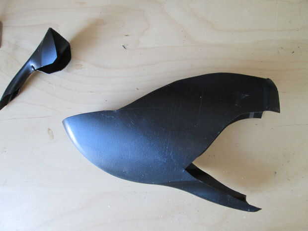 La segunda botella es la base para el cuerpo, cola y alas. Primero puede dibujar una forma en el plástico con un lápiz normal. Usé un lápiz de color blanco lo dejó ver en la fotografía. Puede empezar con la sierra otra vez, pero casi todo se puede cortar con tijeras. Forma el borde de las alas en pluma sacando triángulos.
