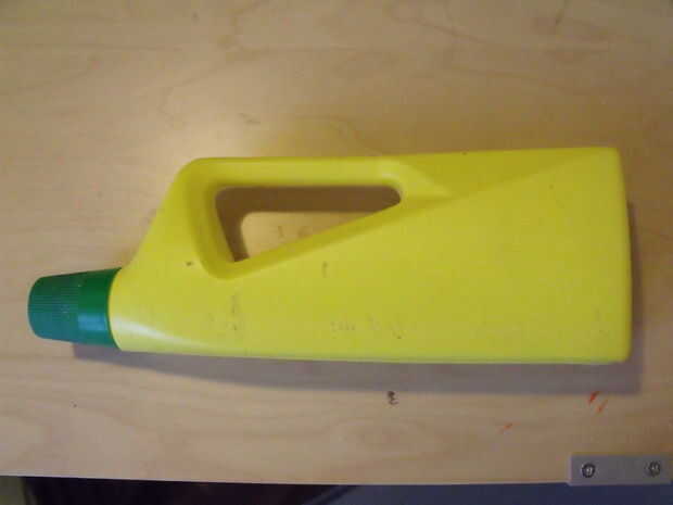 reutilizar viejas botellas de plástico vacías como objetos de arte. Busca botellas de detergente plástico con un asa. Preferiblemente no PET pero HDPE, con un pequeño 2 o 4 en la parte inferior. "la clase de grasa de plástico". Usted necesitará