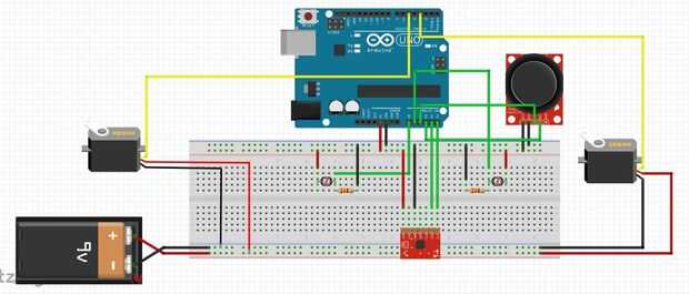 Los dos servos conectados a los pines digitales PWM 3 y 5.