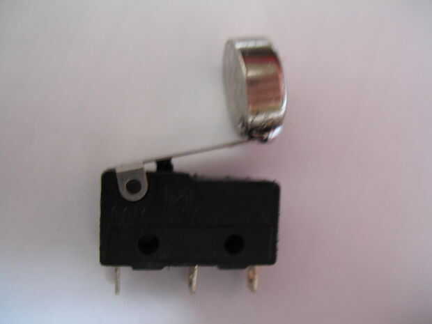 Hacer la cabeza del clavo caliente a fuego y ponerlo en la hoja de plástico sobre el motor en una posición que cuando el robot está parado verticalmente la célula del botón toque el suelo.