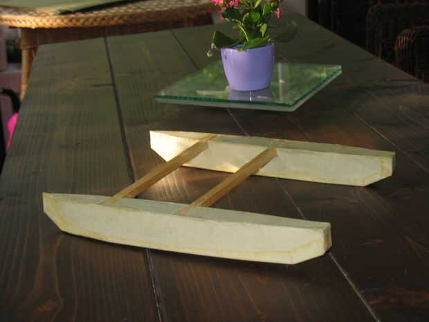 Para insnance la canoa tiene geometría simple, los lados son redondeados y la parte inferior se corta en un ángulo en la proa y popa. Es de cartón y pintado resistente al agua. El método de balanceo es bueno para estabilizadores independientes, donde los estabilizadores son colgados para arriba con las secuencias de un palo y natación, como boyas. Cuando usted hace el balanceo con estabilizadores fijos (como en la imagen) puede sujetar los palillos con espaciadores en el tablero para medir el nivel.