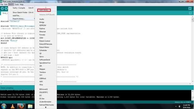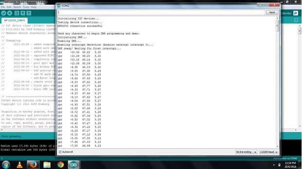 He proporcionado un pequeño código para probar el módulo antes de entrar en el código principal. Este código es hecho por Jeff Rowberg sólo incluyen la biblioteca siguiendo estos pasos: