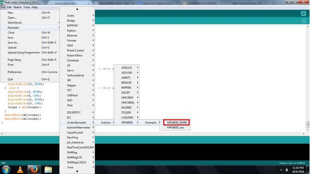 - Ahora que se carga la biblioteca vaya a archivo = > ejemplos = > i2cdevlibmaster = > Arduino = > MPU6050 = > ejemplos = > MPU6050_DMP6.