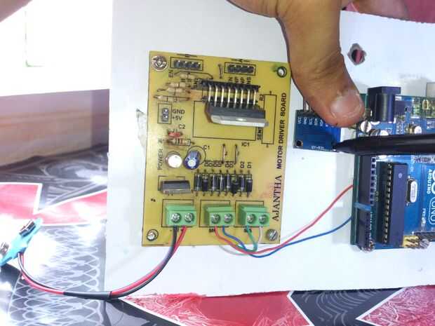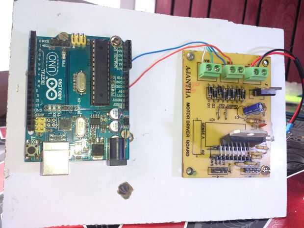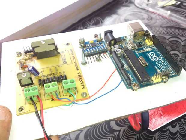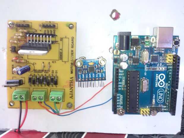 Esto concluye el montaje del módulo controlador de motor, el giroscopio y el Arduino UNO. Tengo siempre el diagrama de cableado de conductor del motor Utilice este diagrama. Conecte las clavijas correspondientes utilizando los cables de puente no muestro los pasos para eso pero creo que he proporcionado suficientes imágenes. La imagen final muestra el chasis con el tablero de conductor del motor y la batería conectada.