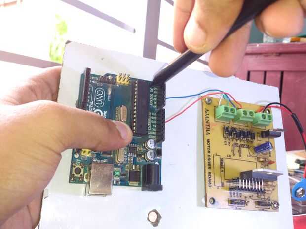 Por último, atornillamos la Arduino a la base utilizando algunos tornillos como se muestra en la figura.