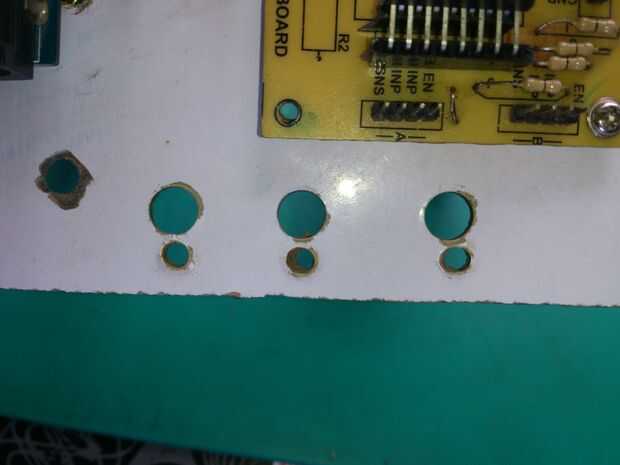 Hacer taladros de 2mm en estos puntos para las bridas de potenciómetro.