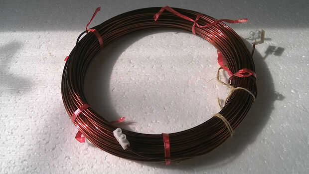 parámetros de la bobina: D:220 mm, d:2 mm cable de Cuz, n:73, R:0.3 ohmios