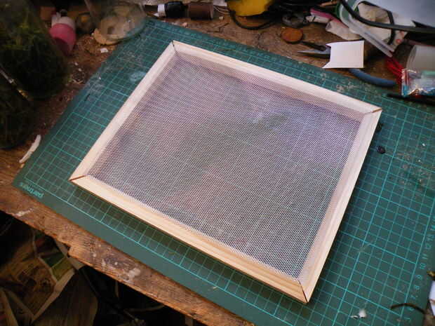 Corté dos marcos tamaño idénticamente. Uno toma la malla y se convierten en el molde, la otra descansar encima de la malla y se convierten en las barbas.