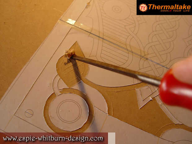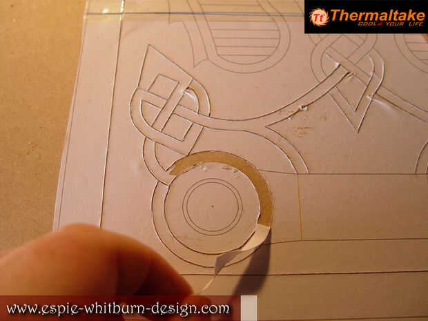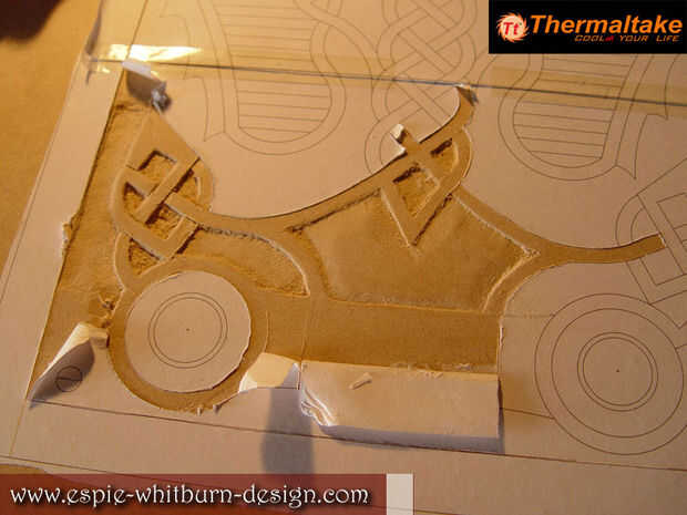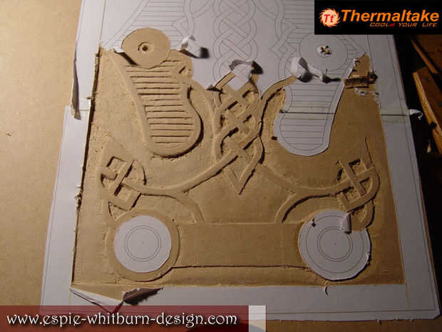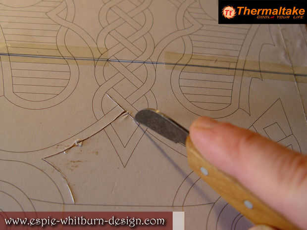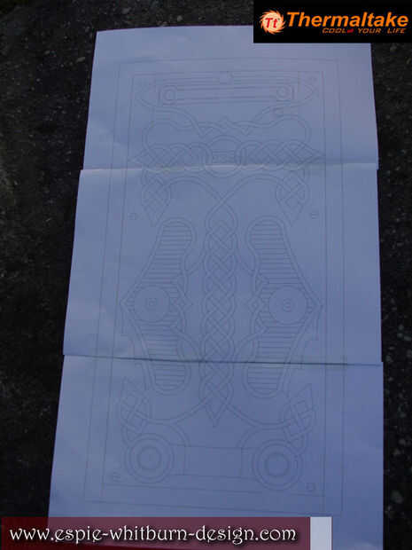 Estoy pensando en el MDF basado en uno de mis diseños que tiene un nudo céltico influencia de talla. Utilizar el software AutoCAD para dibujar el diseño, luego imprimir hojas A4 y les pegan para tener una escala de 1:1 del diseño que pueda usar como plantilla.
