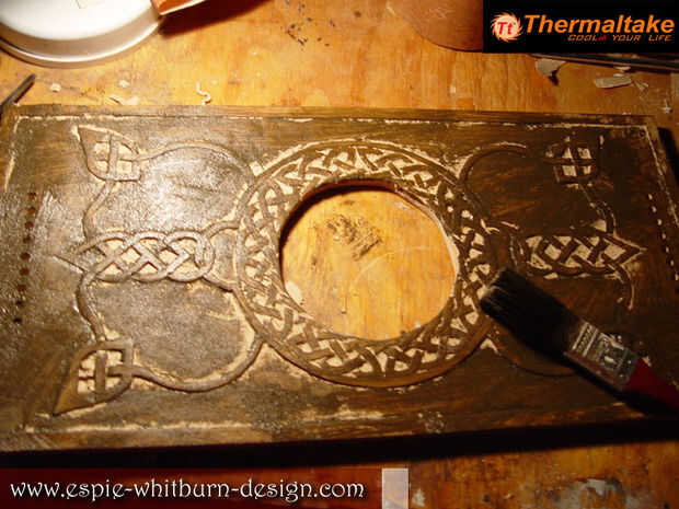 Hoy había terminado de tallar el panel superior y también lo había manchado. Quizás necesito arena alrededor de la abertura del ventilador ya que es un poco áspero.