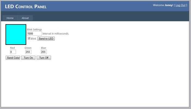 este artículo que explica mucho acerca de la comunicación serial. Después de trabajar la manera de enviar el color a la Arduino escribí un programa en C# por lo que no tengo que abrir el Monitor Serial y tipo en un montón de números. Lo único que hace es elegir un color y lo envía a la Arduino, que actualiza el LED. Poco después de hecho ese programa, pensé que lo guay sería controlar la luz de mi teléfono! Yo inmediatamente se zambulló en una aplicación web ASP.NET para hacerlo. De esa manera pude controlar el LED desde un navegador web en cualquier computadora (o teléfono inteligente) en mi red de casa. Esto resultó para ser la manera más esfuerzos de lo que deben ser, como mi inexperiencia llevó a todo tipo de problemas, pero con la ayuda de un amigo he podido conseguir trabajo. Estoy muy satisfecho con el resultado.