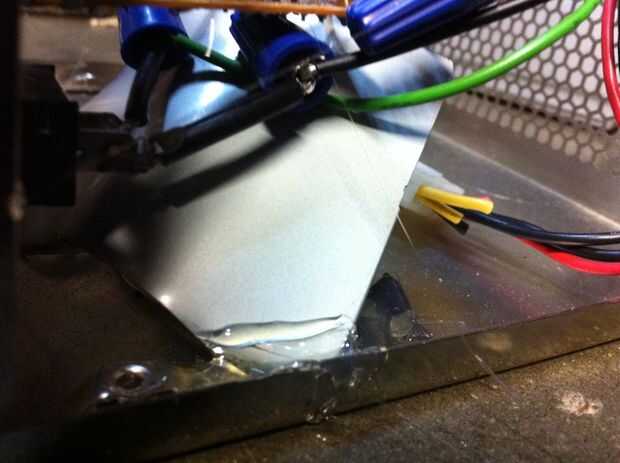 Pensé que sería una buena idea añadir una especie de escudo de calor. para que la bobina no fundir el circuito USB. así que tomó la parte trasera de una vieja disquetera y había tajado para arriba anuncio caliente había pegado en su lugar.