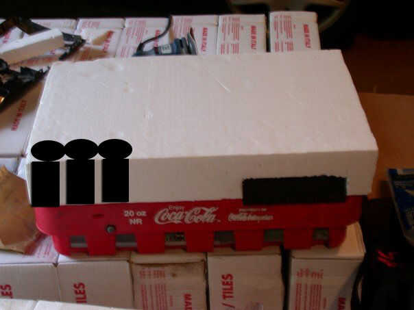 Hacer otra plantilla para que fácilmente puede colocar las latas en la espuma de poliestireno, no necesita pegamento si haces este derecho, el puede encajar bien en la espuma de poliestireno. Después de cortar las latas para que puede arena la parte inferior de ellos evitar cortarse.