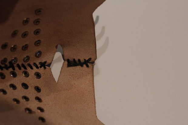 El primer paso para cordón es marcar y perforar los agujeros. Tuve un golpe así que usé un taladro. Mucha gente le dirá que los agujeros de perforación está sucia y confía en mí... Es. Si yo fuera usted, me me haces un favor y comprar un puñetazo.