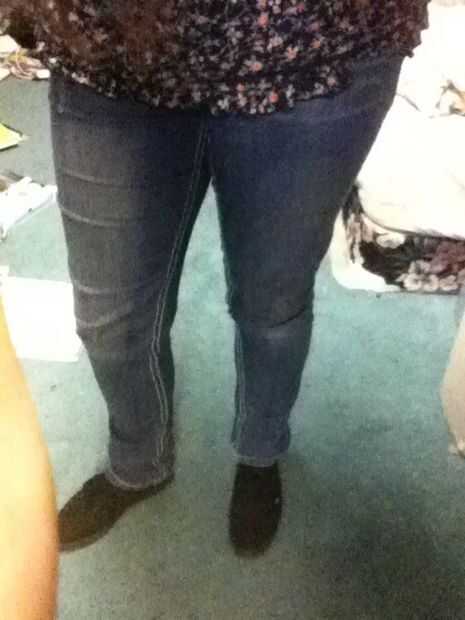 encontré estos pantalones vaqueros en descuentos para como cinco dólares. Primero, cuando llegué les eran como la parte inferior de la campana, pero les tomé.
