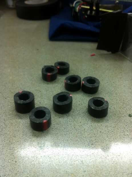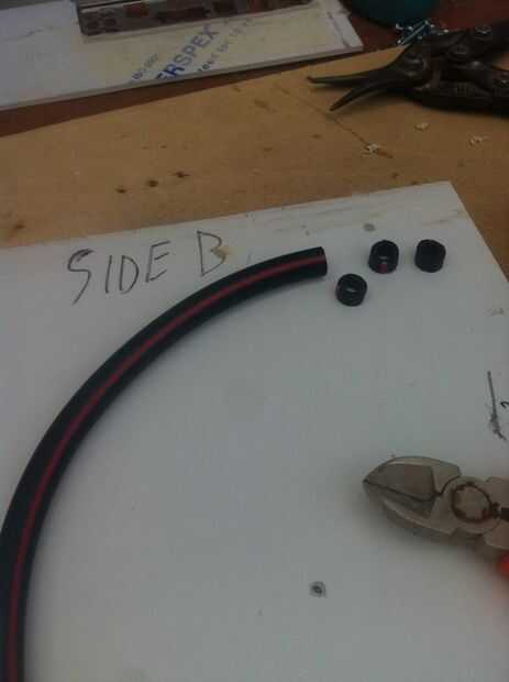 Tomé un tubo de goma nuevo, cortar 8 piezas (que coinciden con los 8 orificios del MB) y perforar el plexiglás en consecuencia