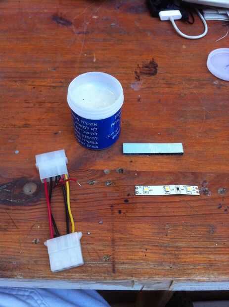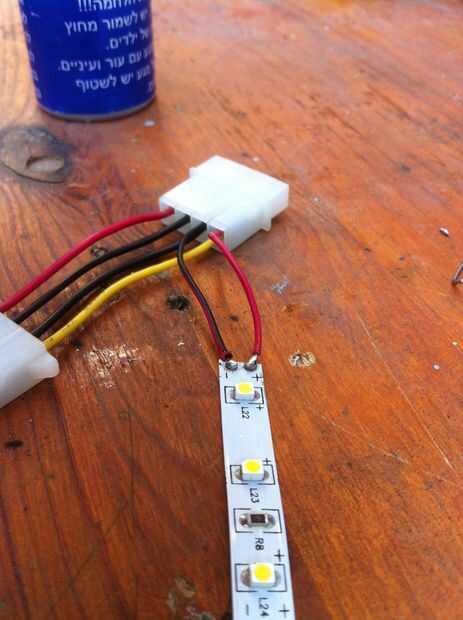 Después de soldar dos puntos pequeños en la tira de LED, que conectado a un conector MOLEX a la tira de LED.