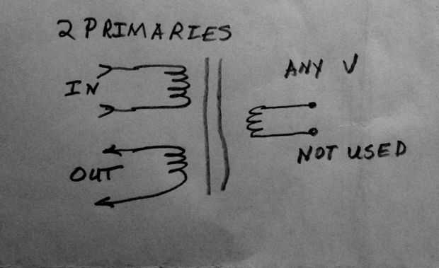Una segunda manera es utilizar un transformador de 120 o 220 voltios. Normalmente estas tienen 2 primarias totalmente independientes, que espera utilizar en paralelo para 120 voltios y en serie para 220 voltios. En su lugar utilizar como insumo la otra como salida. s hace un transformador de 1:1 o un transformador de aislamiento.