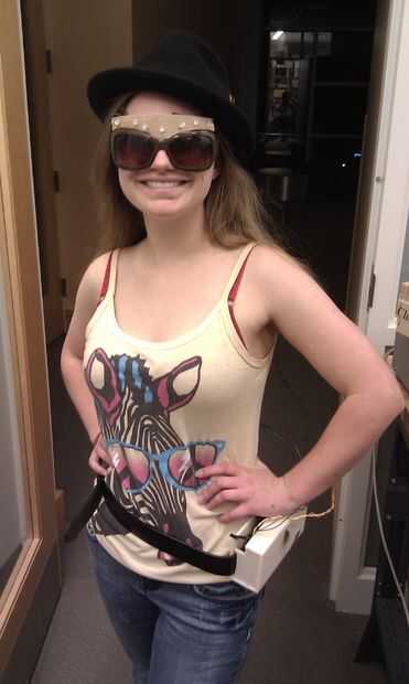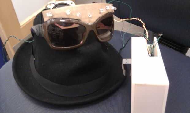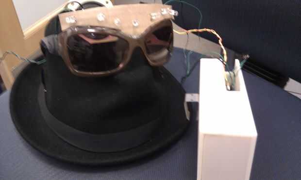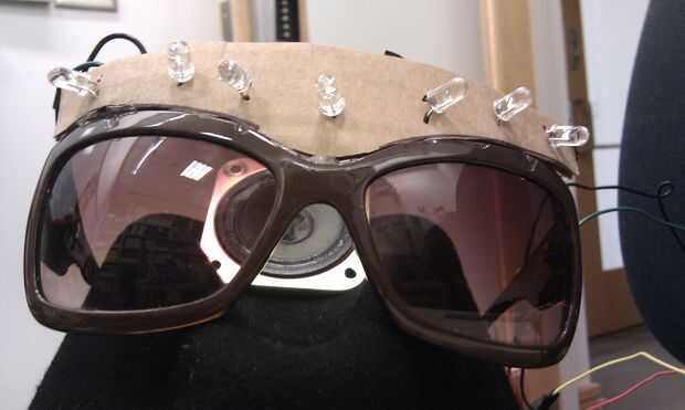 Un componente adicional es un par de gafas de sol con una fila de LEDs en la parte superior. El LED empezará a parpadear con mayor frecuencia a medida que aumenta la velocidad del corredor.