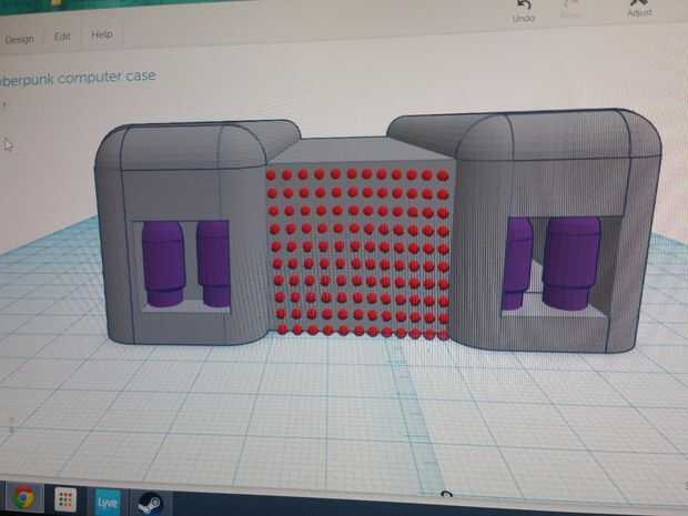 empecé el proyecto utilizando un viejo caso de torre antec. que mide a y un digital imitan para arriba en tinkercad.com