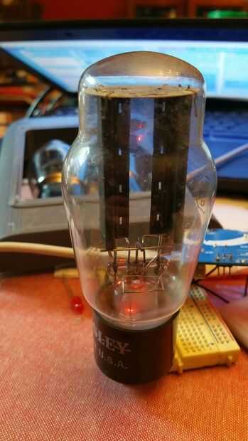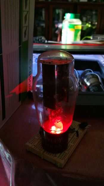 Miré a través de mi caja de tubos para los más bonitos. primero traté de alimentar con dc de 6volts para ver cómo ellos brillaban, sólo uno era bonito y brillante pero empujé demasiado fuerte y era muy viejo para que queme.
